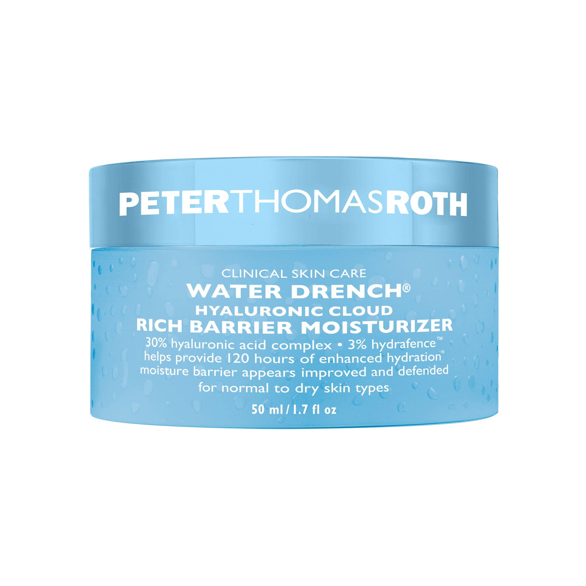 Rich barrier moisturizer provides enhanced barrier defense and drenches your skin with protective moisture. An innovative Moisture Barrier Boosting Complex™ helps increase the look of skin thickness, firmness and elasticity to combat the drying and distressing effects of external dehydrators. A 30% Hyaluronic Acid Complex draws in water and helps plump the look of skin with moisture, while 2% BioWave helps to improve skin’s natural moisturization factor (NMF) and prevent future moisture loss. 3% HydraFence™ helps provide 120 hours of enhanced hydration.* The look of dryness, fine lines and wrinkles is visibly reduced. Rich moisturizer dries with a luminous finish and a healthy, youthful-looking glow. Fragrance-free.