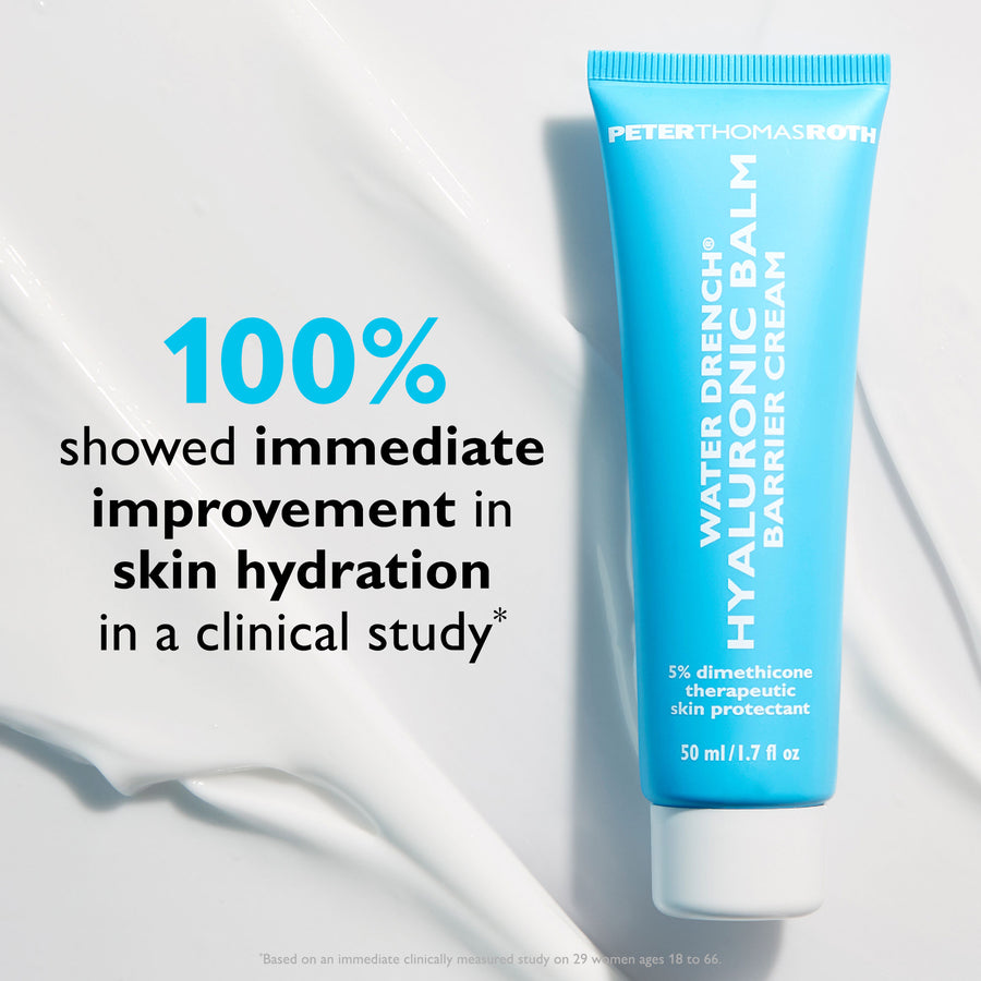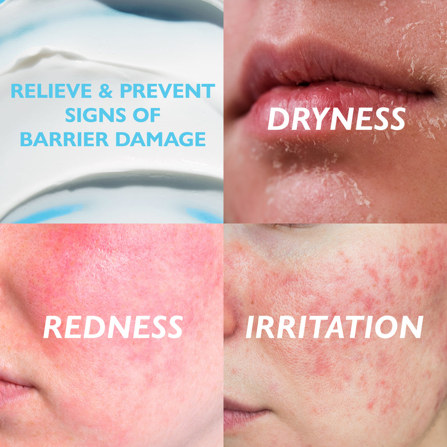 Hydrating barrier cream formulated with Hyaluronic Acid, 5% Dimethicone and 5% Glycerin works as a treatment balm to rescue the look of reactive skin showing signs of barrier damage such as dryness, redness and irritation. This non-greasy, balm-to-cream formula is clinically proven to immediately improve skin hydration and strengthen the skin barrier.*
